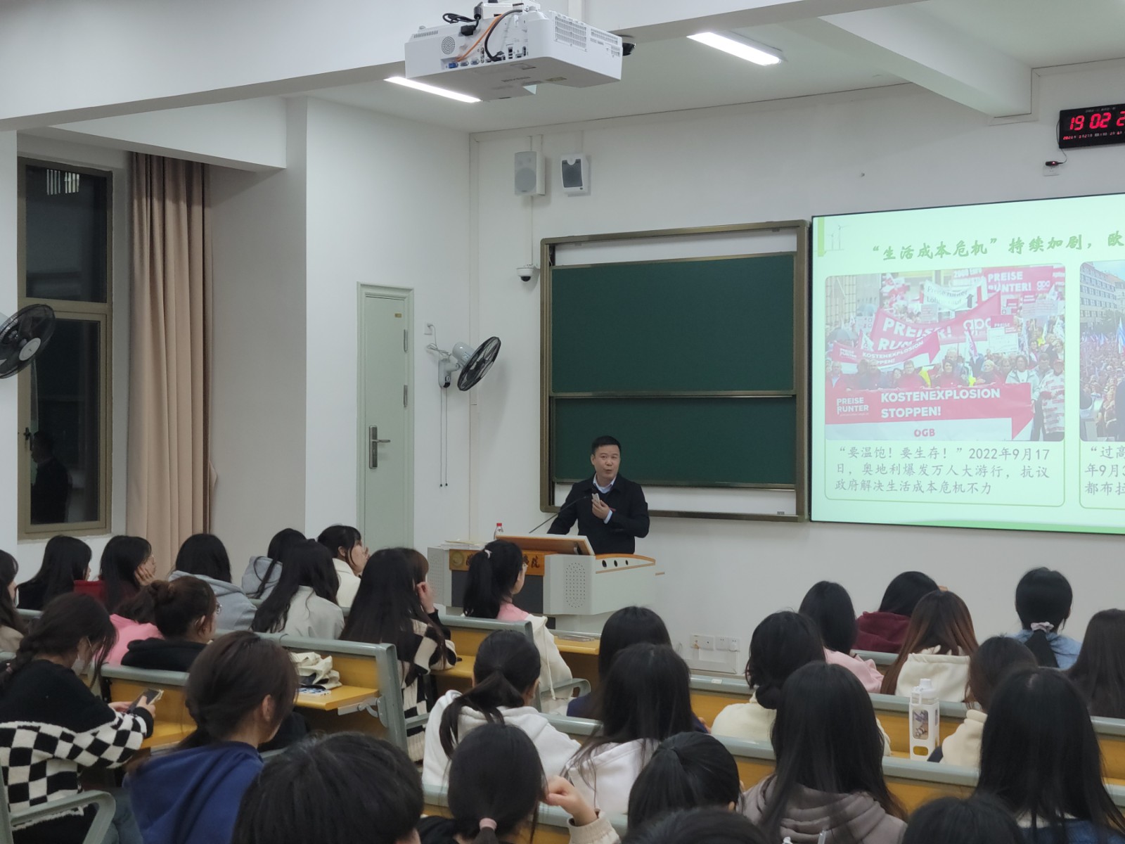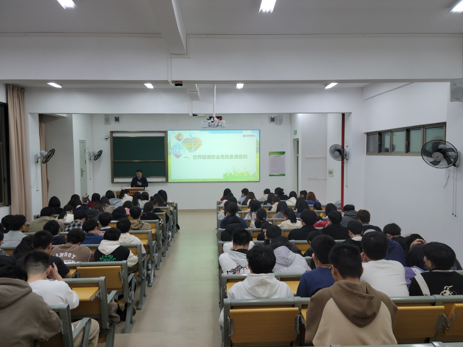 3月27日晚,学院纪委书记冯开猛以“放眼全球能源危机,打赢我国能源安全主动战”为题,给管理系学生讲授了一堂内涵丰富、启示深远的思政课。